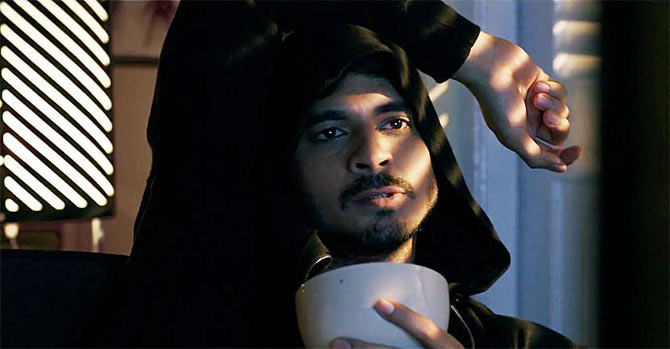 01tahir-raj-bhasin3Mamy tu też sprawdzoną formułę zabawy w kotka i myszkę – pojedynek charakterów między Shivani a jej głównym wrogiem, zimnym i wyrachowanym typem, którego twarzy nie zna. Debiutant Tahir Bhasin przy tak silnej ekranowej partnerce wypada niestety dosyć nijako. Szkoda, że nie obsadzono tu aktora, który w szwarccharakter potrafiłby tchnąć więcej ognia (taki Nawazuddin i mielibyśmy rewelacyjny duet). Za to Anil George (pamiętny Vicky z Miss Lovely) jako Vakil daje solidny charakterystyczny występ.