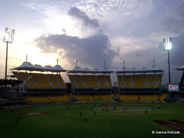A i trudno o odpowiedniejsze miejsce akcji, bo Ćennaj obok Mumbaju jest jednym z najbardziej zwariowanych na punkcie krykieta miast pośród tych, które odwiedziłam (w weekendy na kilkukilometrowej miejskiej plaży Marina drużyny rozstawiają się tak gęsto, że może się pomieszać, gdzie kończą się poszczególne pola i kto jest czyim zawodnikiem).